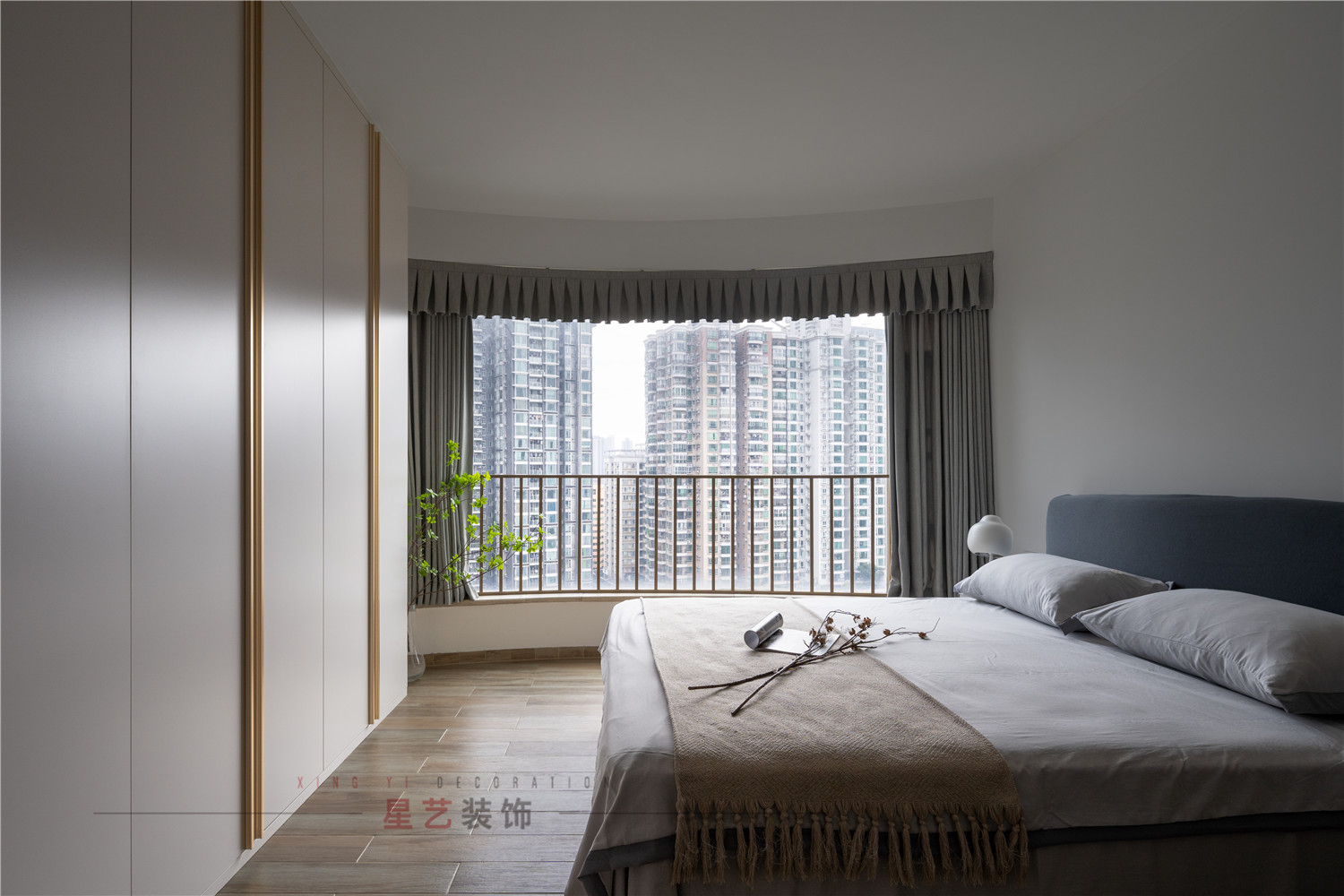 大人的臥室優雅大氣,整面衣柜讓房間更加整潔,窗簾選擇更加輕盈的材質,在視覺上擴大空間,設計上營造出寧靜溫馨的氛圍,輕松的心情在家中得以釋放