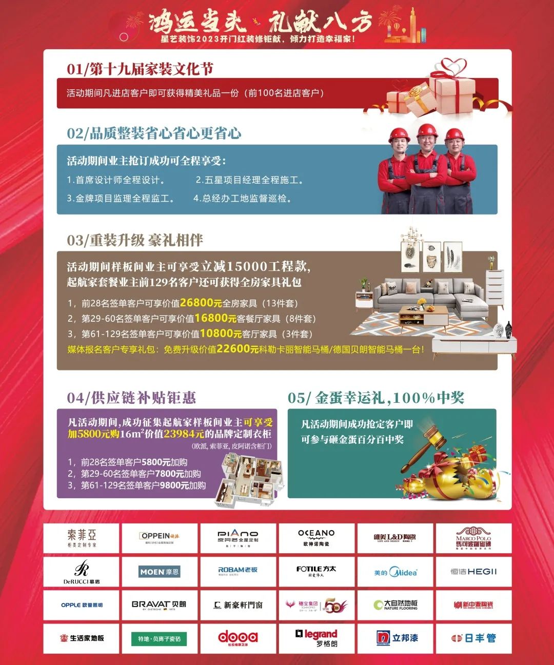 04 活動(dòng)期間樣板間業(yè)主可享受立減15000工程款,起航家套餐業(yè)主前129名客戶還可獲得全房家具禮包